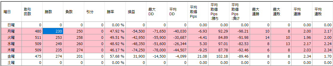 バックテスト結果(曜日別)
