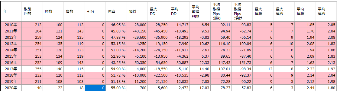 バックテスト結果(年別)