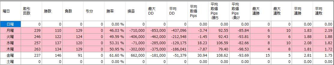 バックテスト結果(曜日別)