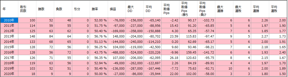 バックテスト結果(年別)